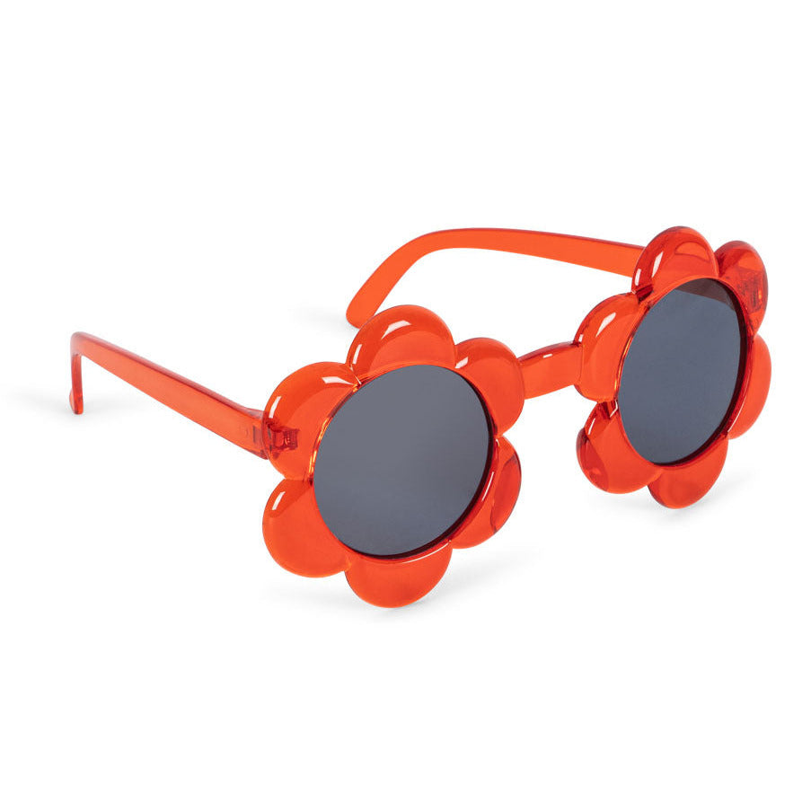 Sólbrillur við TAC-polariseraðum gløsum. Sniðgivnar í blómuformi við glitri. 100% UV-verja, bólkur 3. Ætlað børnum 5-10 ár.