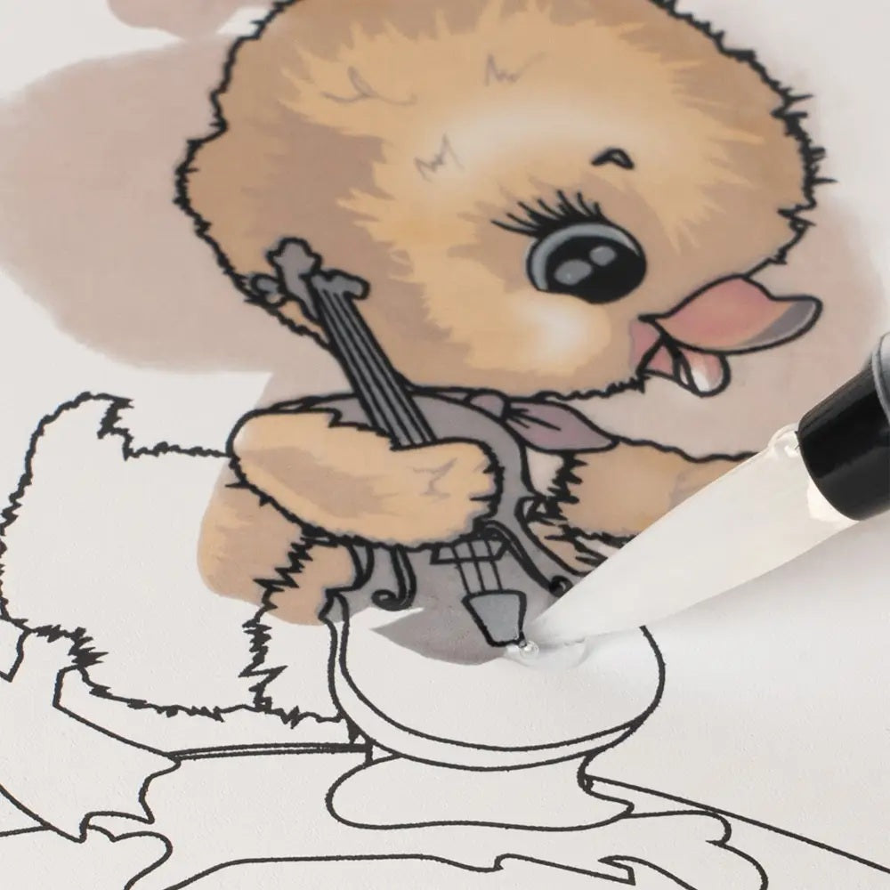 Stuttlig litbók, sum skiftir farvu tá síðan verður vát. Smartur pensil, at fylla vatn í, fylgir við. Liturin fer av aftur tá síðan tornar og síðurnar kunnu tí nýtast umaftur og umaftur.